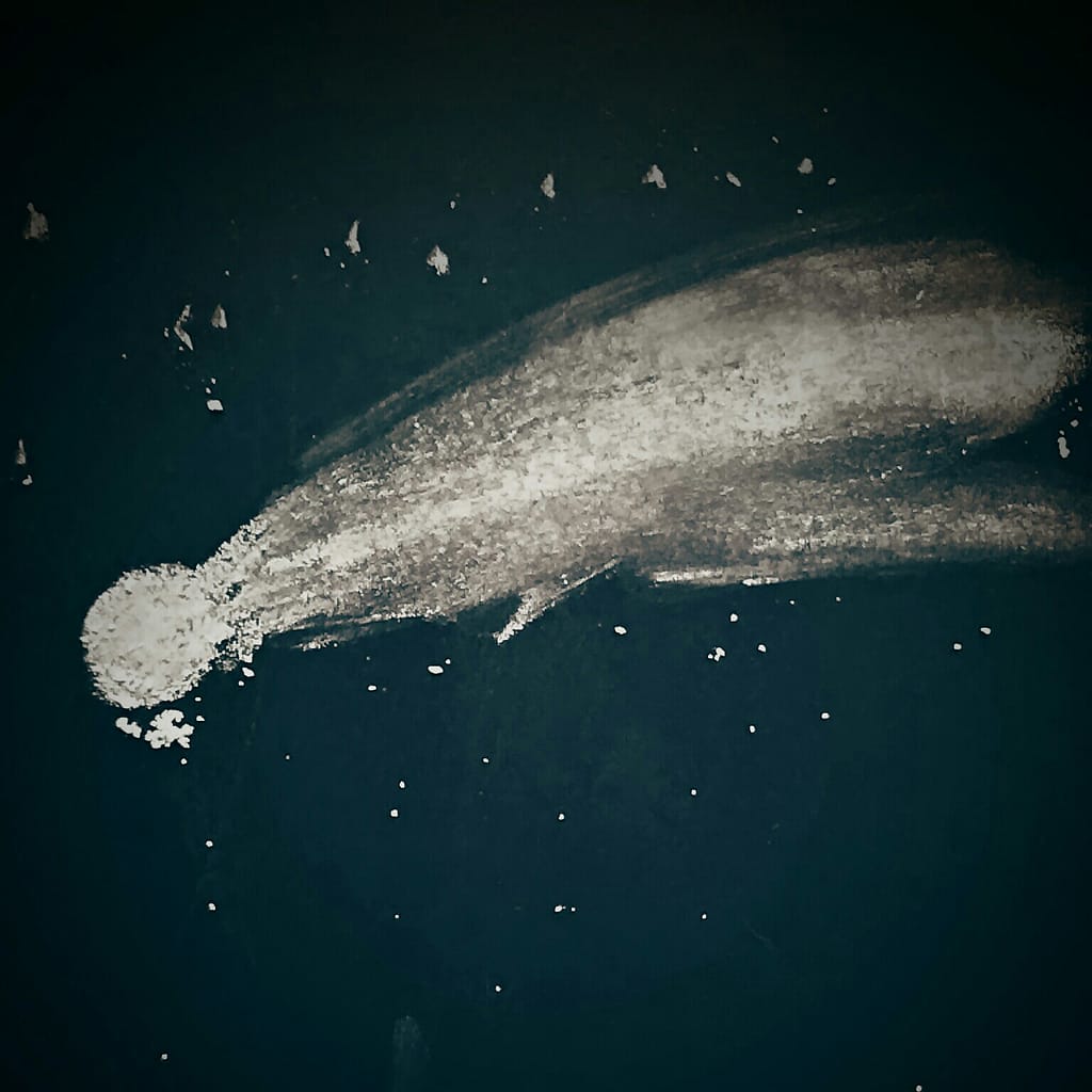 この旧ロゴマークは、森 大那が2020年、黒板にチョークで彗星を描いたものを撮影した写真。